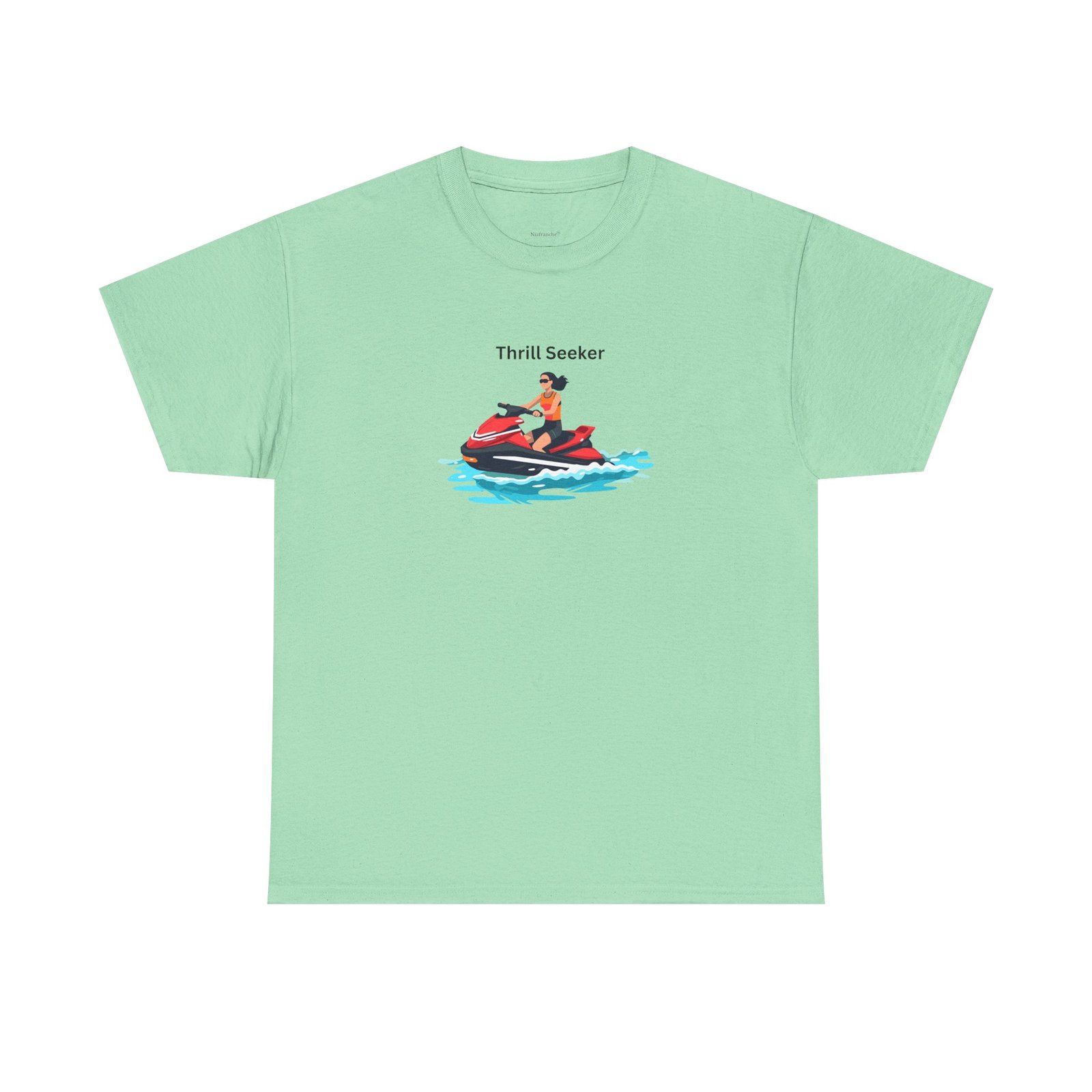 This 100% cotton tee exudes adventure and excitement. Perfect for those who love water sports. Ideal for summer outings, beach vacations, and adventurous holidays.