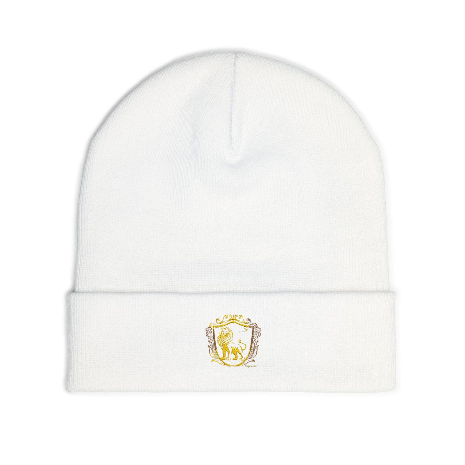 Stay warm and stylish this Autumn and Winter with this knit beanie featuring an embroidered lion design. Perfect for those looking to add a trendy touch to their cold weather outfits. Great gift for animal lovers and those who enjoy unique accessories. Relevant for Christmas, birthdays, and winter celebrations. The form-fitting design provides a snug and comfortable fit, ensuring it stays in place while keeping you warm.